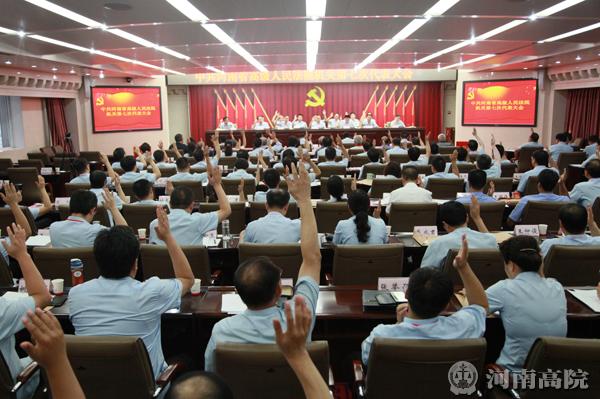 大会在全体高唱《国歌》声中开幕。会上,省委省直工委组织部长康艳宣读了省直工委《关于同意召开中共河南省高级人民法院机关第七次代表大会的批复》;宋海萍代表中共河南省高级人民法院机关第六届委员会作工作报告;会议选举了中共河南省高级人民法院机关第七届委员会和纪律检查委员会,通过了中共河南省高级人民法院机关第六届委员会工作报告决议,通过了中共河南省高级人民法院机关第六届纪律检查委员会工作报告决议。