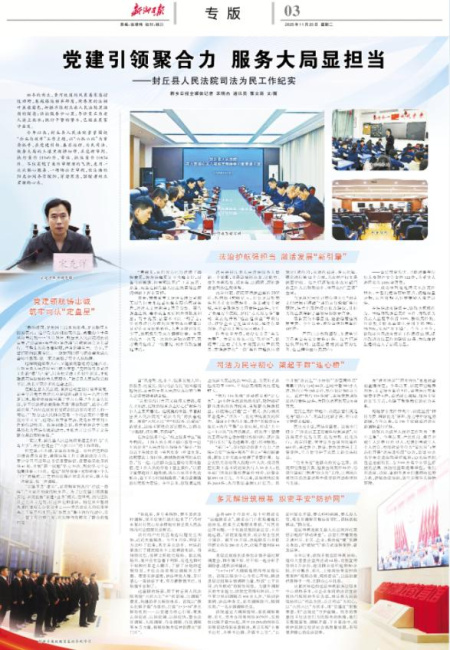 党建引领聚合力 服务大局显担当 党建引领聚合力 服务大局显担当——封丘县人民法院司法为民工作纪实 作者:郭文涛 发布时间:2025-11-25 18:20:58
