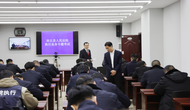 为全面提升执行干警专业素养,打造过硬执行队伍,12月15日,封丘县人民法院组织执行局全体干警进行执行业务知识考试。院党组书记、院长宋克洋到场督考。