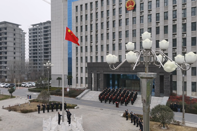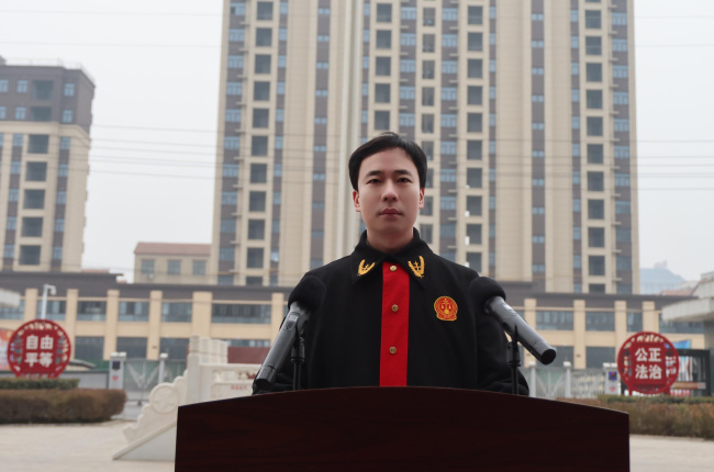 1月4日,元旦佳节后的第一个工作日,封丘县人民法院举行“庆元旦 升国旗 铸忠诚 强担当”主题升旗仪式。院党组书记、院长宋克洋参加仪式并发表讲话,党组副书记、副院长范冬冬主持仪式。