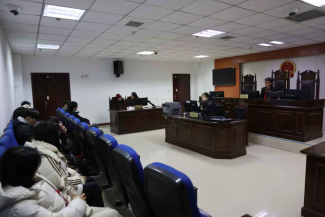 在法院工作人员的引导下,社会实践团成员参观了诉讼服务中心,详细了解一站式多元解纷和诉讼服务体系建设情况,现场体验智慧法院便民服务设施。随后,实践团成员们走进审判法庭,旁听了一起赡养纠纷和一起人身保险合同纠纷案件的庭审。两场庭审程序规范、节奏紧凑、过程条理清晰,让在场的成员们直观感受到了司法程序的严谨性与公正性。同时,使大家对赡养纠纷中老年人权益保护的法律适用以及人身保险合同纠纷中的举证责任分配等专业知识有了更深入的理解。