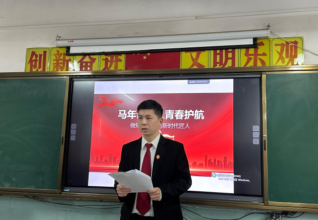 “‘无规矩不成方圆。’我们的一生,就像一匹骏马在原野上奔跑,法律就是脚下的跑道和围栏。它不是为了束缚大家,而是为了让你们这匹‘千里马’能跑得更稳、更远。”讲课中,马洪光法官结合2026丙午马年的时代背景,以“青春与法律”为主题,用生动形象的比喻拉开了法治课的序幕。他摒弃枯燥的法条说教,聚焦职校生身心特点和成长需求,以真实案例为教材,深入浅出地讲解三大法律风险:通过真实案例算清打架斗殴的“违法成本账”,提醒“一时冲动可能毁掉一生前程”,教育引导同学们理性处理矛盾,遇事依法维权;剖析帮信罪陷阱,告诫“银行卡、电话卡绝不能出租出借”;讲解盗窃罪、职务侵占罪的法律后果,强调“小拿小摸”是碰不得的底线。