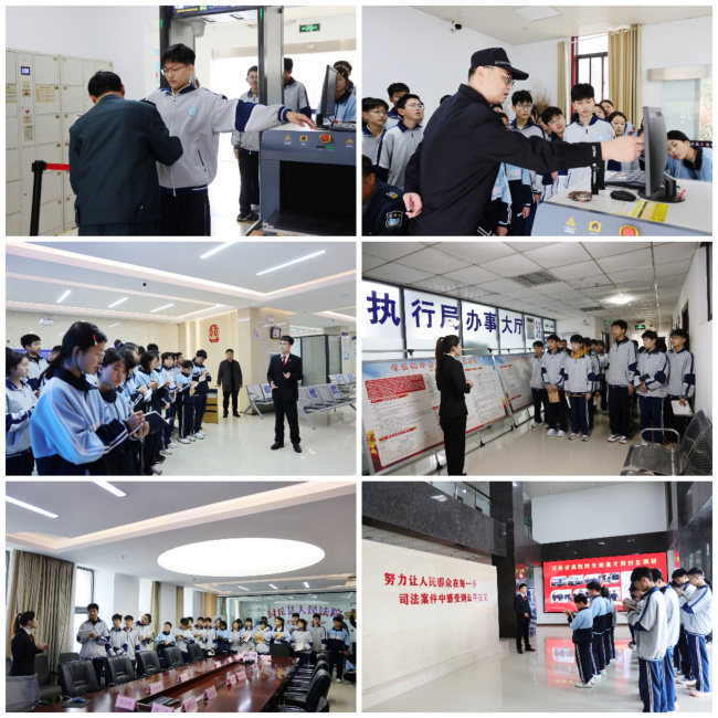 上午9时30分,同学们在法院工作人员引导下,首先通过安检通道,了解安检流程对保障法庭安全的重要意义。随后,大家依次参观了诉讼服务中心、执行局、一楼大厅电子屏,法院干警用通俗易懂的语言介绍了立案流程、便民服务措施及执行工作的职能,让同学们对法院工作有了直观认识。